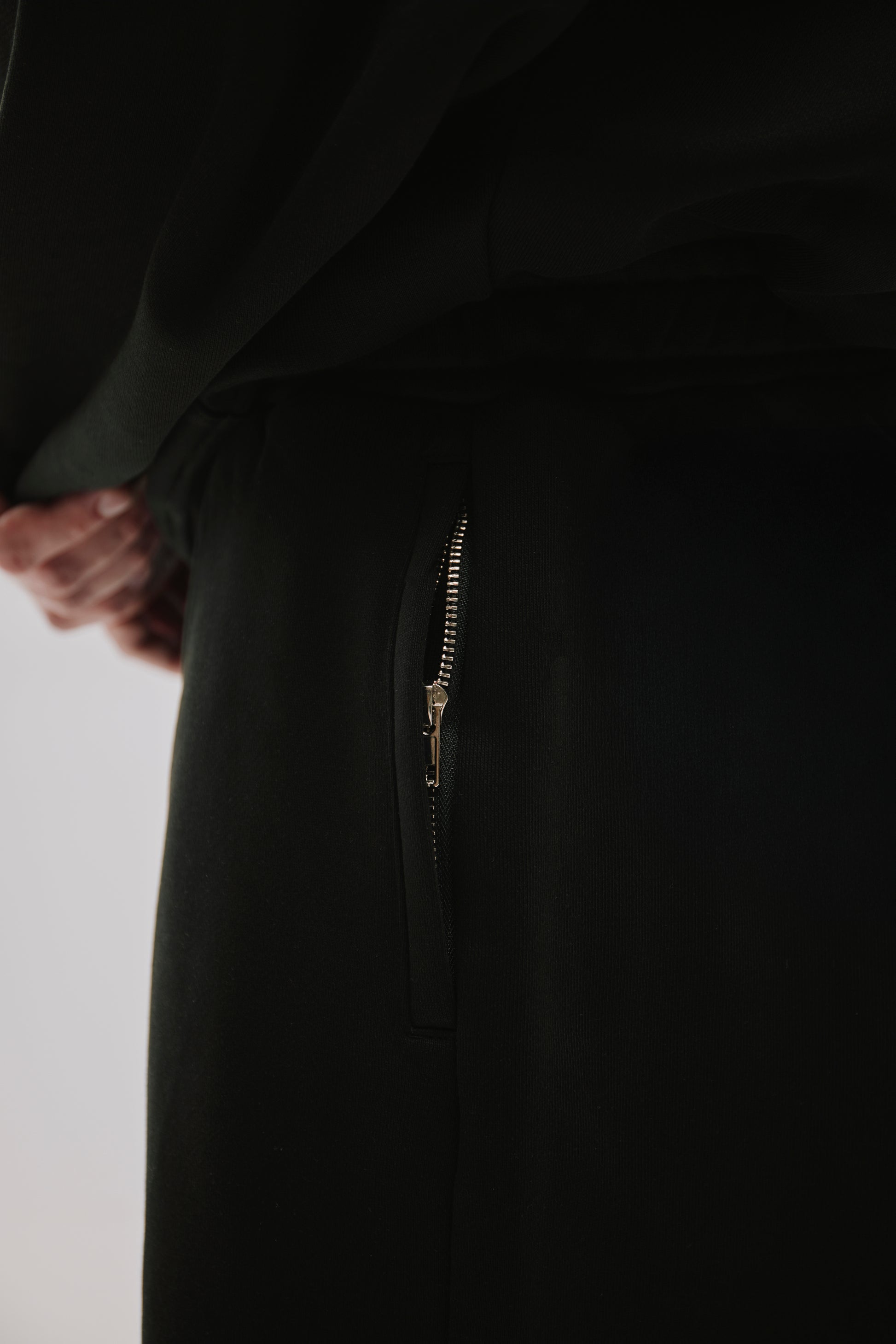 Design: Elasticated waistband with hidden drawstring, discreet side pockets, single back pocket, no external branding